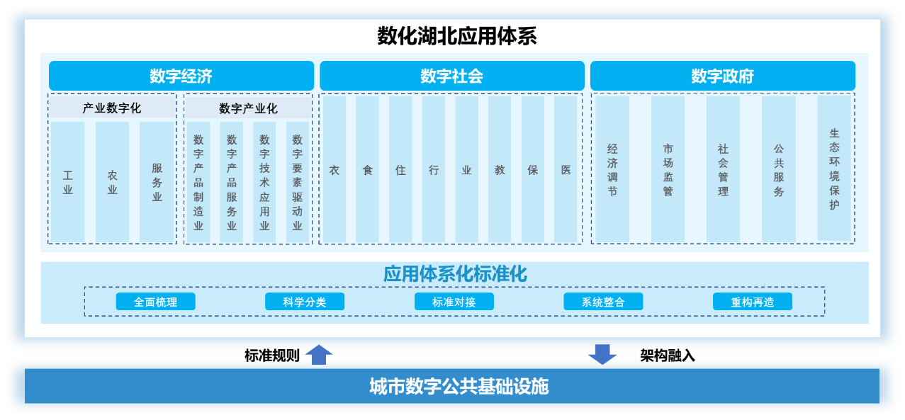 推动“数字基础设施”与“数据资源体系”融合发展是数字化改革的必然选择。2022年6月,为了抢抓数字化机遇,湖北省第十二次党代会及2023年省政府工作报告中明确要求“构建统筹集约、全面覆盖的数字公共基础设施体系”,以城市数字公共基础设施为支点打造支撑城市全面数字化转型发展的基础底座,培育完整信息化体系壮大数字经济的肥沃土壤。